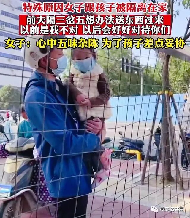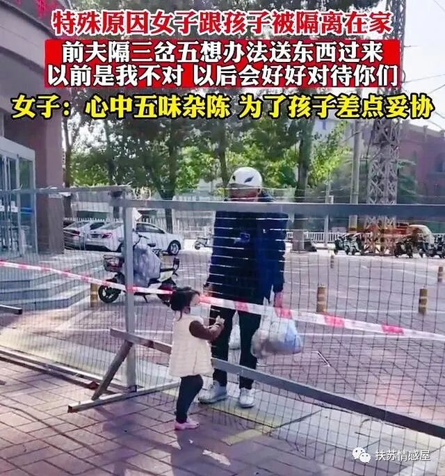 近日,河南有一名女子跟孩子因特殊原因被隔离在家,不能出去,家里也没有什么吃的,就发一个朋友圈,前夫就想办法送食物上门!