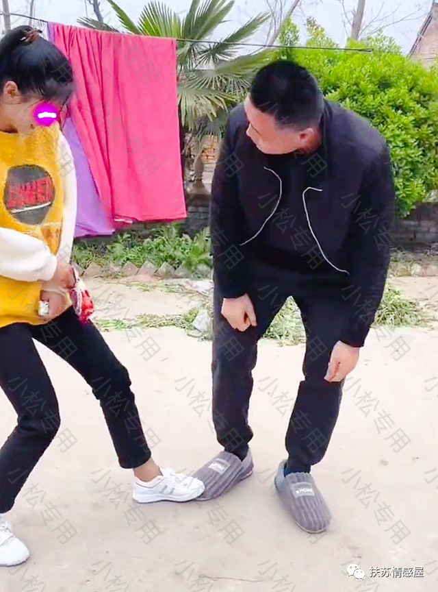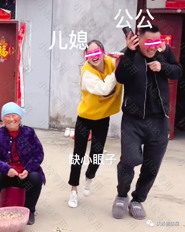 公公不断往后面撤,儿媳就一步一步地紧逼,勾肩搭背显得极为亲密,一旁的婆婆看了乐了,说你们两个都几十岁的人了,还像个娃一样。