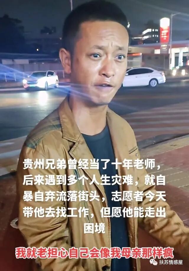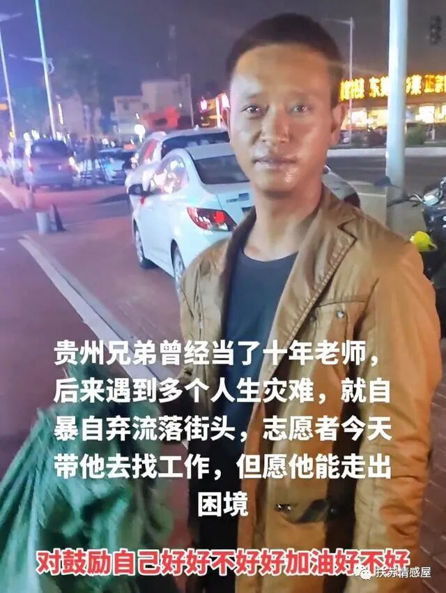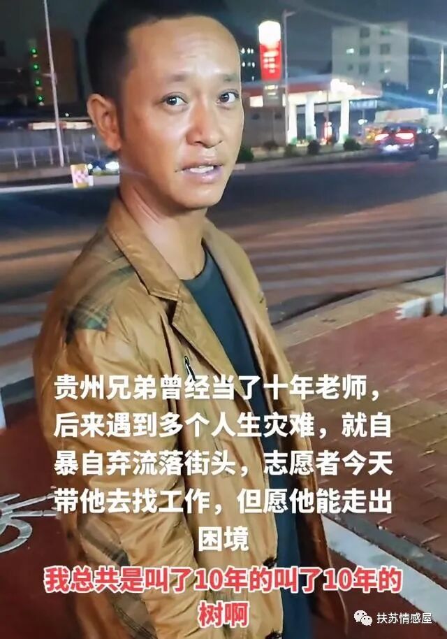男子自述贵州人,曾经是一名人民教师,有着长达十年的教龄,但后来因为家里发生一些事,他就自暴自弃成了流浪汉!