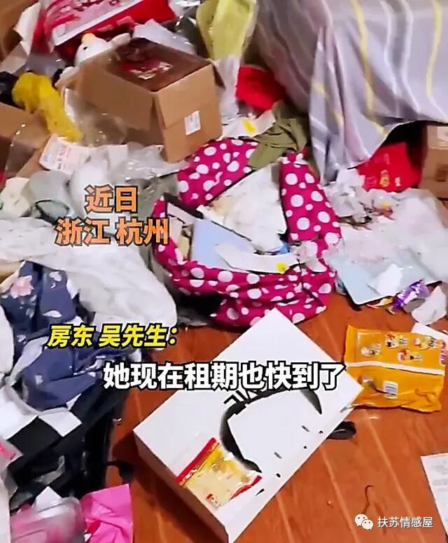 房东吴先生表示:她的房子也快要到期了,如果她想续租,就必须把房间卫生搞干净,不要熏到其他人,若依旧不肯露面也不要紧,我会扣除几百块押金请人打扫!