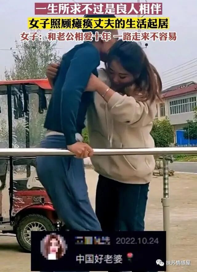 女子不光说得很好,做得也漂亮,尽心尽力的照顾,无论走到哪里,都带上男人,为了能抱得动丈夫,她也因此吃了不少苦!