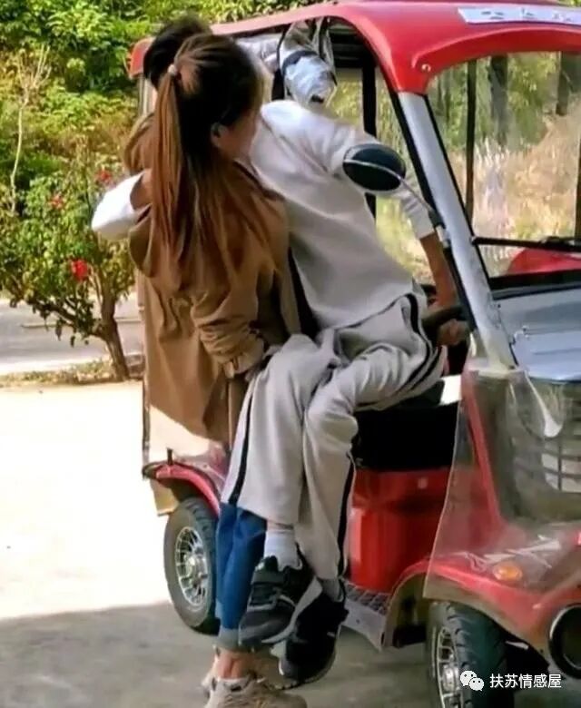 从画面中可以看到,女子的老公行动不便,走进走出都是女子抱走,无论去到哪里,她都把老公带在身边,不让他离开自己的视线!
