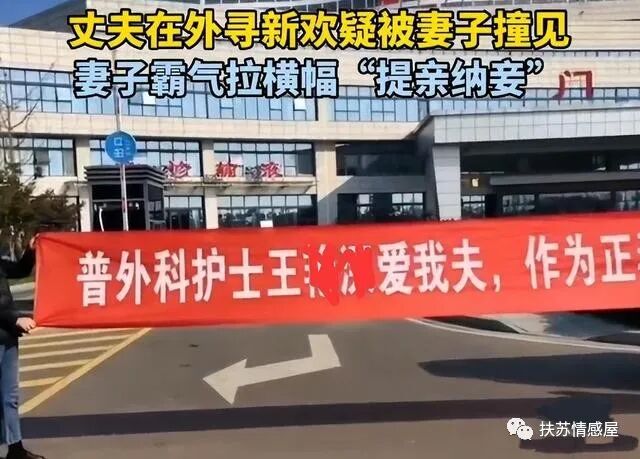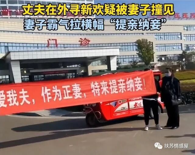 女子先是花钱做了一条横幅,后面又雇了几个人,直接去到女方单位门口大闹,扬言要帮老公提亲,原配亲自帮老公纳妾!