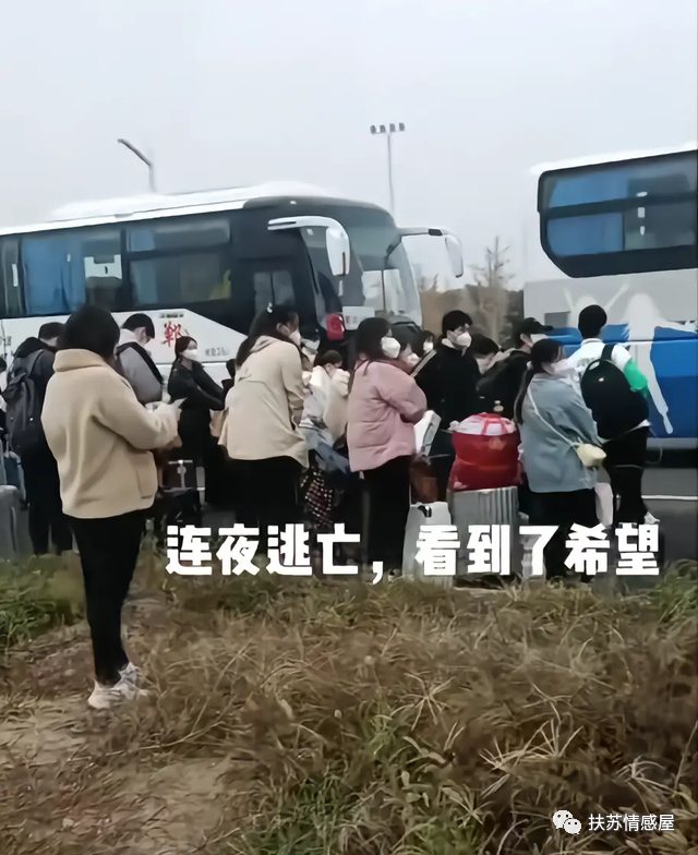 小月表示,28号下午6点看到了可以出逃的机会,很多人翻墙离开,有一个男孩子帮忙她才走了出来,踏上了返乡的旅程!