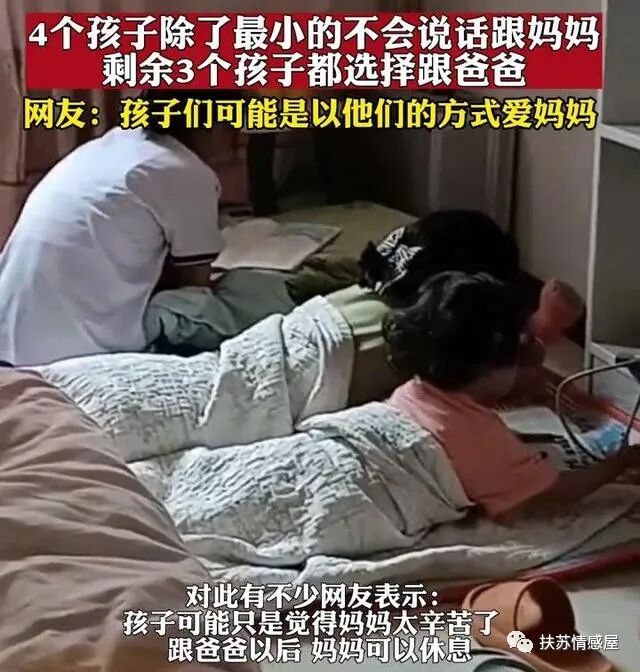 这样的举动让人很不理解,小孩大部分不都跟母亲关系会好点吗?为何孩子会选择爸爸?而不是陪伴他们成长的妈妈呢?