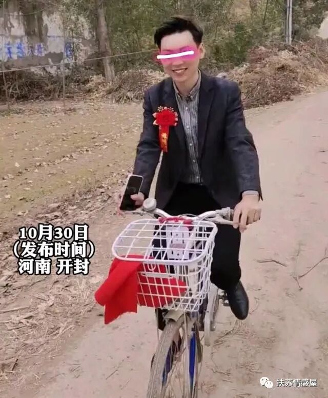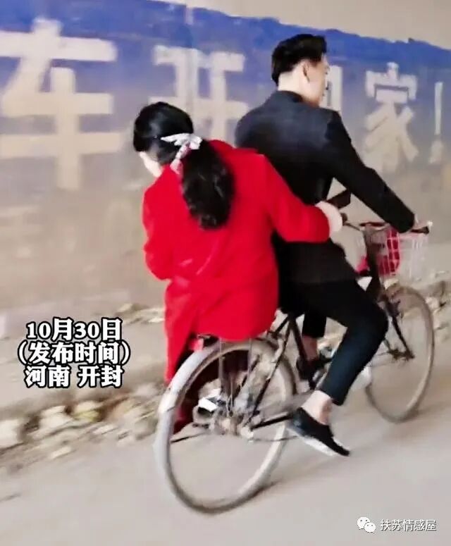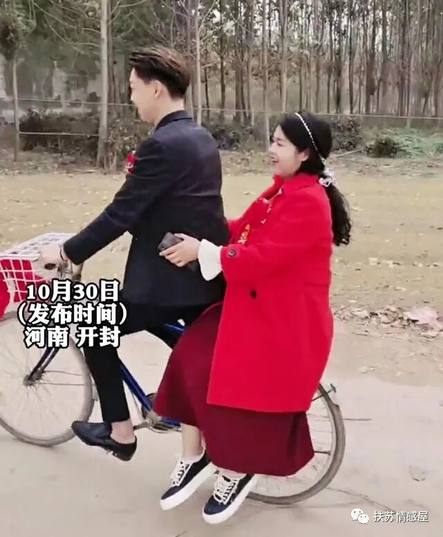 近日,河南开封,有一对新人结婚他们就用最简单的方式,新郎骑着一辆自行车,就把新娘给娶回家了!