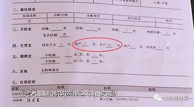 李女士还不知道咋回事,当她看到自己体检报告的时候,也是一脸的不可置信,自己啥时候有过这些经历,流产七次早产24次!