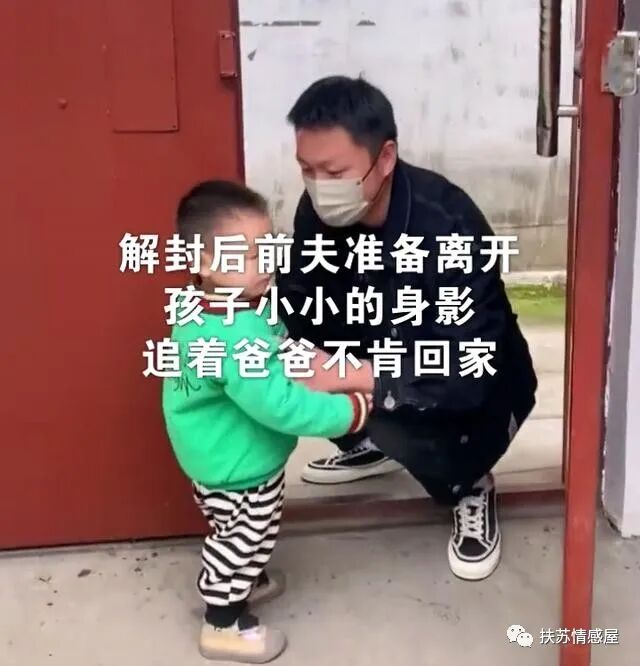 谁知前夫刚踏出大门,孩子又跟着后面追了出去,女子则跟在后面,老公也是边走边回头,最后又忍不住回过头来抱住孩子!