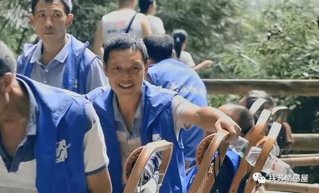 网友们觉得一个年轻人,要想上山完全可以自己爬,为什么要去折腾那些年过半百的大叔,让他们费那么大的劲了把自己抬上山。