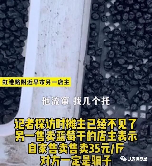 记者也来到市场暗访,附近摊主告诉记者,蓝莓干一般卖35元一斤,那些流动摊住却只卖20,就是想吸引那些上了年纪的老人!