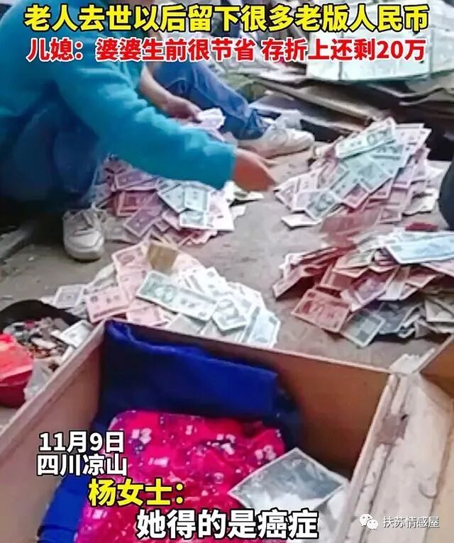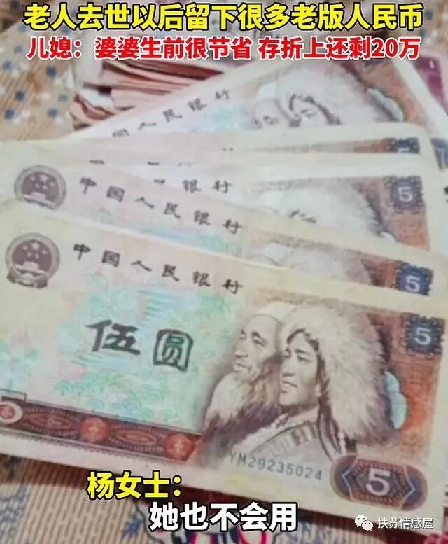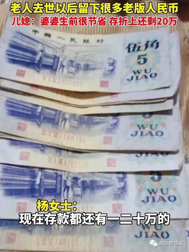经过整理遗物发现,老版人民币无法估算价值,可她还有现金存款,我们去查里面还有20万!