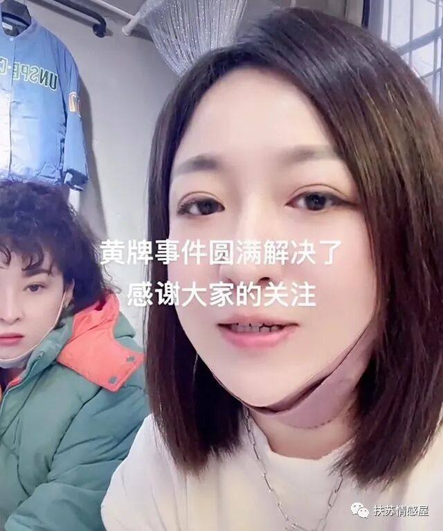 事情圆满解决以后,女店主也录了视频回应此事,女店主说昨天那个大哥和那个年轻人来过店里了,我们已经沟通好了,黄牌也已经撤掉!