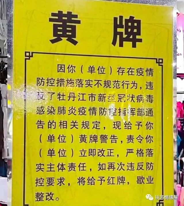 那件事才刚刚得以解决,但在双11当天下午,牡丹江市又发生了一件令人不可思议的事,服装店因为未佩戴口罩被贴黄牌警告!