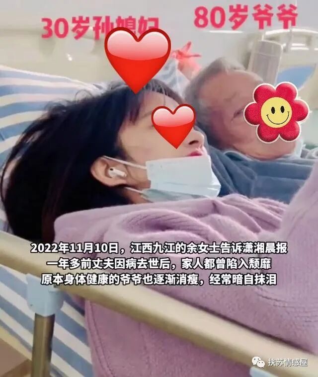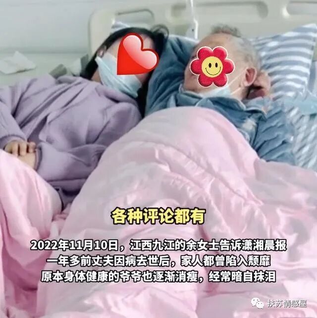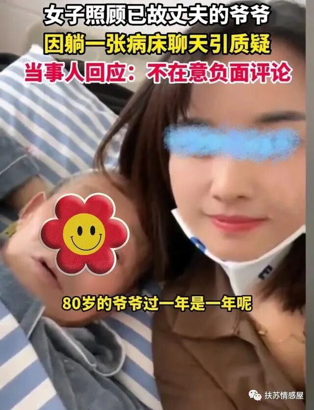 女子照顾已故丈夫爷爷,同躺一张病床聊天引争议,女子:不在意负面评论