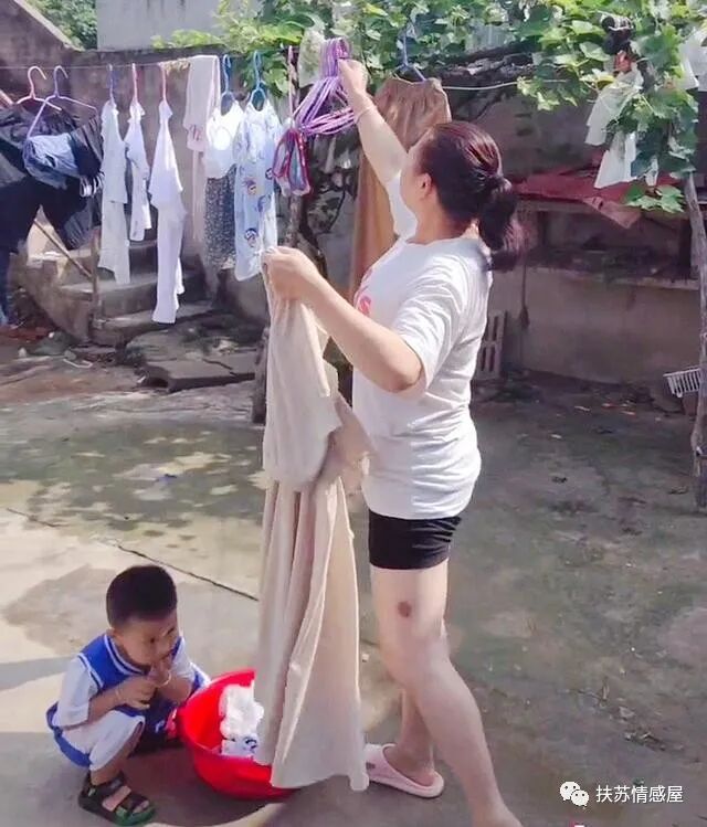 公公长期在外面干活,婆婆就在家处理家务,就连女子和孩子的衣服,都是婆婆在帮忙洗,忙完以后又进屋帮忙带孩子。