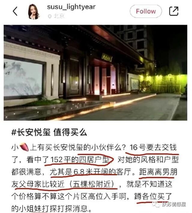 除了家庭住宅以外,他们夫妻还准备入手一套长安悦玺的住宅,看好的是一套150多平的房子,按照这个面积,在北京售价也不低于千万元。