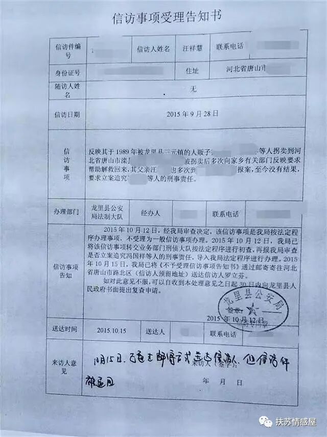 2015年,汪祥慧的儿子(小武)特地从河北唐山跑到龙里报案,但是后来却没有消息,过了很久警方才回应说没法立案,理由是过了追诉期。
