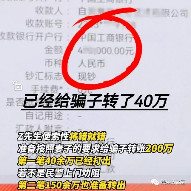 后来民警让Z先生提供妻子电话,民警亲自打过去电话,告诉对方这就是一个诈骗团伙,你的老公为了能够让你清醒已经给人家转了40万。