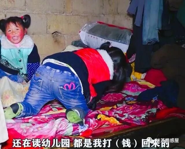 两个女儿在很可爱,在床上玩得不亦乐乎,虽然家庭贫困,两个孩子应有的童年快乐还是有,言语之间显得很有礼貌也很懂事,还进行简单对话