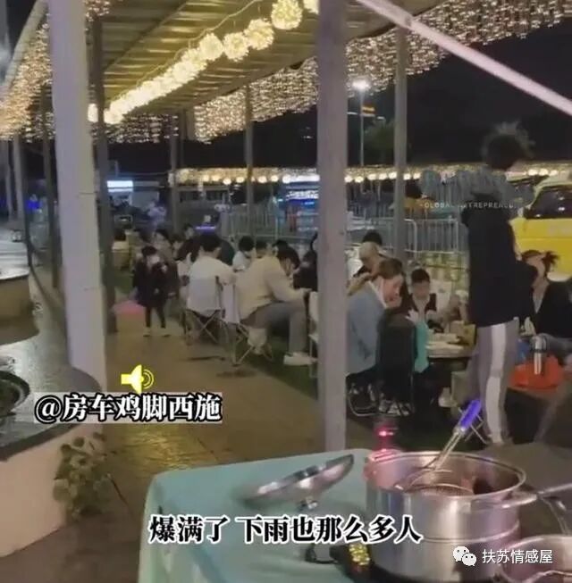 即便是天公不作美下雨,也丝毫没有影响她的生意,就跟平常一样座无虚席,还有人为了等她的鸡脚,在现场等候超过两个小时!