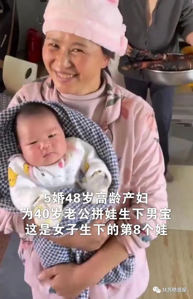 近日,有一名48岁的高龄产妇生下了人生的第八个孩子,前面七个都是女儿,最终拼到了一个儿子,她和老公脸上满是笑容。