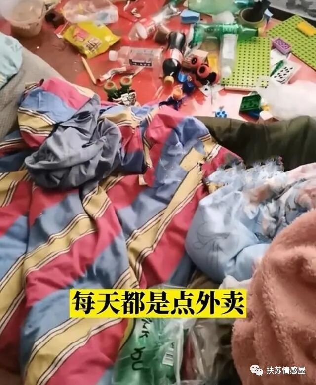 问起孩子,男子才知道从他离家的第二天,妻子就已把孩子送到他姥姥家家去了,妻子就独自一个人在家打游戏,饿了就点外卖,连垃圾都不丢。
