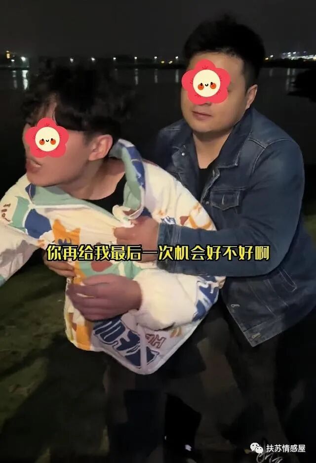 最终女孩还是决定跟他分手,表示不会跟他走,男子马上跑过去拽着女孩的手,声嘶力竭的求谅解,你再给我一次机会好不好?