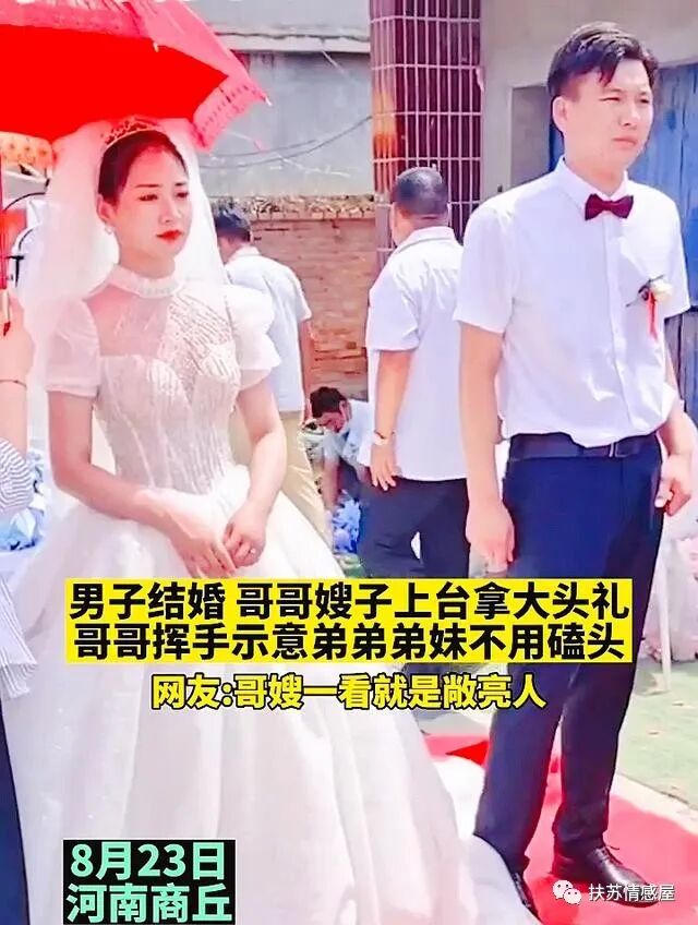 这种婚礼的习俗是根深蒂固地,附近的人都是这样的礼数,即便哥哥嫂嫂瘦了弟弟妹妹的磕头礼,村里人也不会说什么,这都是正常现象!