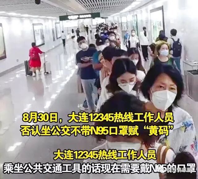 按近期的大连,着实是让人有些想不明白了,坐公交地铁必须佩戴N95口罩,否则就会被赶下车,网传还有可能会给你赋黄码。
