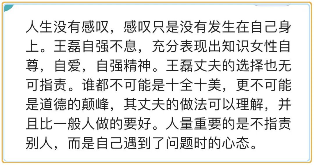 所以,王磊虽然理解丈夫的选择,但她不能原谅。