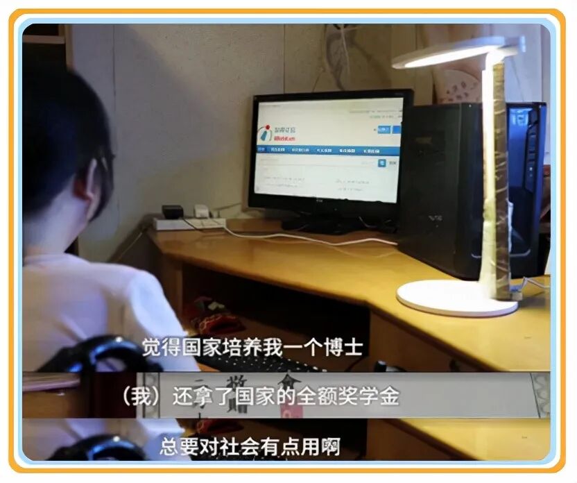 她说:“国家培养了我一个博士,我还拿了国家的全额奖学金,总要对社会有点用啊。”