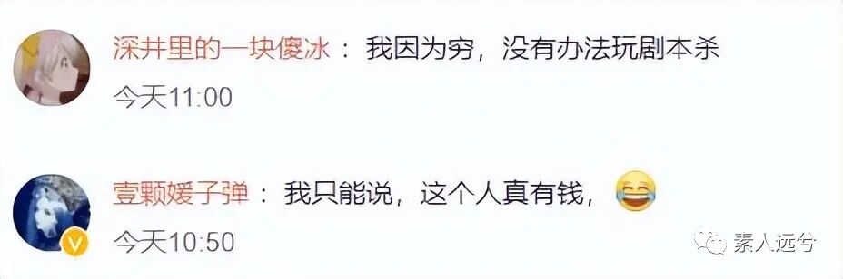 还有网友说:幸好因为我穷,没办法玩剧本杀。