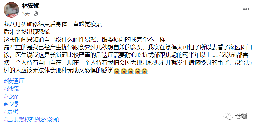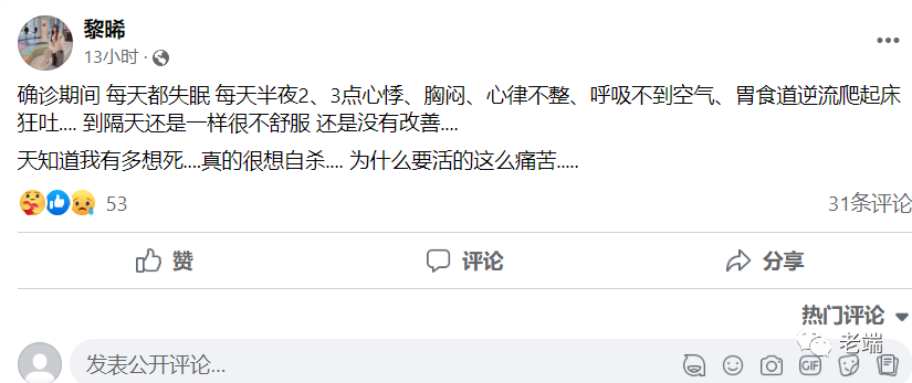 5,新冠后遗症有时候比直接杀死你还可怕,直接死了就是死了,而这东西会持续不断地折磨你,让你产生自杀的念头,让你觉得只有死了才是真正的解脱。