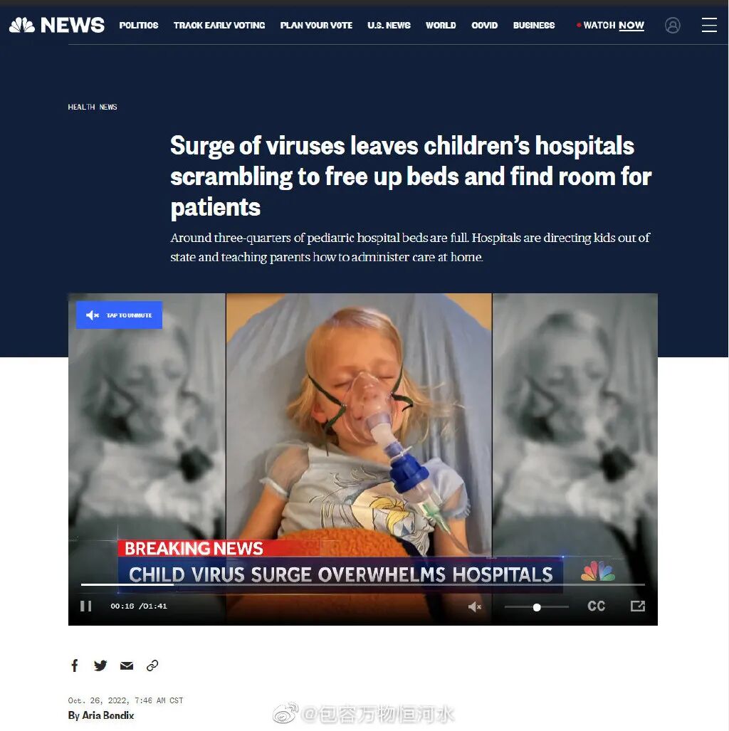 最近美国儿科患者激增,全都是呼吸道感染,今年必然是美国历史上流感最严重的一年,道理也不复杂,新冠破坏了小孩的免疫力,本来不会得流感,这次必然中。本来不需要住院,这次甚至要进ICU。