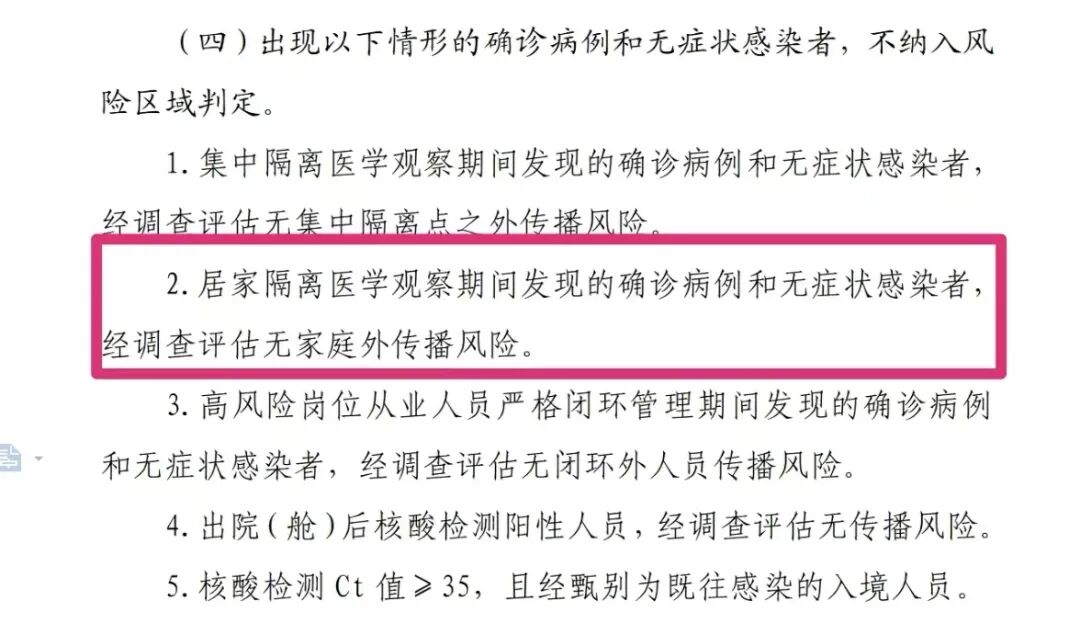 更为重要的是,我发现旧规中划定高风险的标准是两例以上,新规对人数没有规定,一例算不算?没有明确。而新规中还有一条“居家隔离期间发现的确诊病例”如果没有家庭外传播风险,就不能纳入风险区域判定。也就是说,第二例即使是新增,也是居家隔离期间发现的,要研判有没有家庭外传播风险,如果跟第一例是一家人,依然可以不纳入延续高风险区判定的依据。