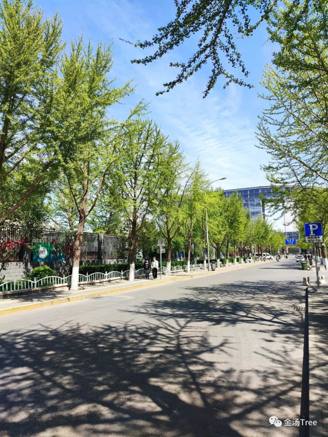 但今天我决定直行穿过马路,顺着对面那条绿色的小路往前走,再右拐,走过几个街口后,再汇合到我那路车的公交站,坐车回家。我想走一走。在公司吃了点东西,所以可以算作饭后的百步走。此外更主要的是,春风很爽,春景很美妙。我想赏景和拍照。