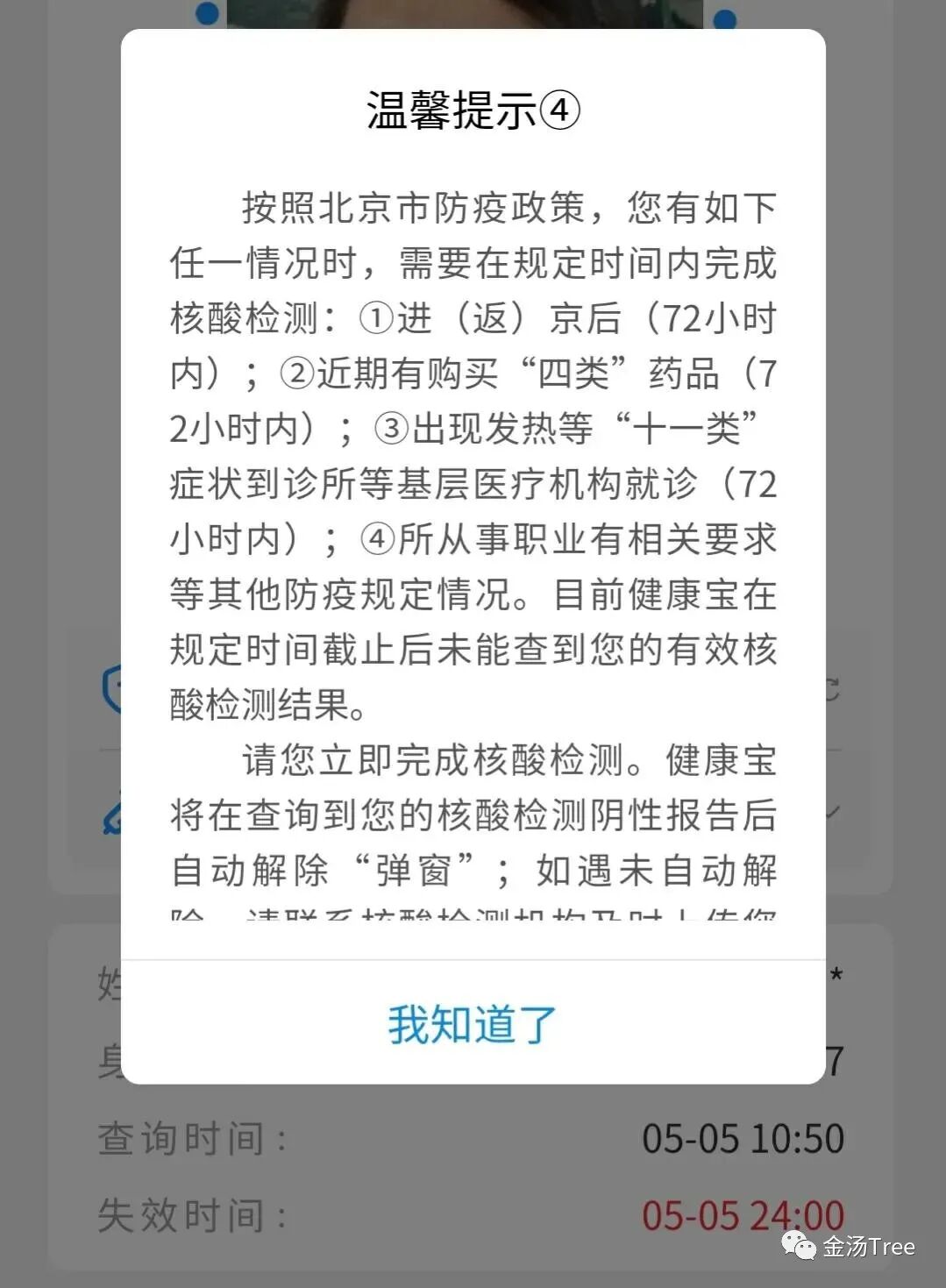 5.5号是五一小长假后第一天上班,大部分人因出现弹窗4不能进入大厦办公,只能请假回家。弹窗4的出现很莫名,同样的核酸况,有人弹窗有人正常;但弹窗4必须消除,否则第二天依旧不能进出办公大厦。