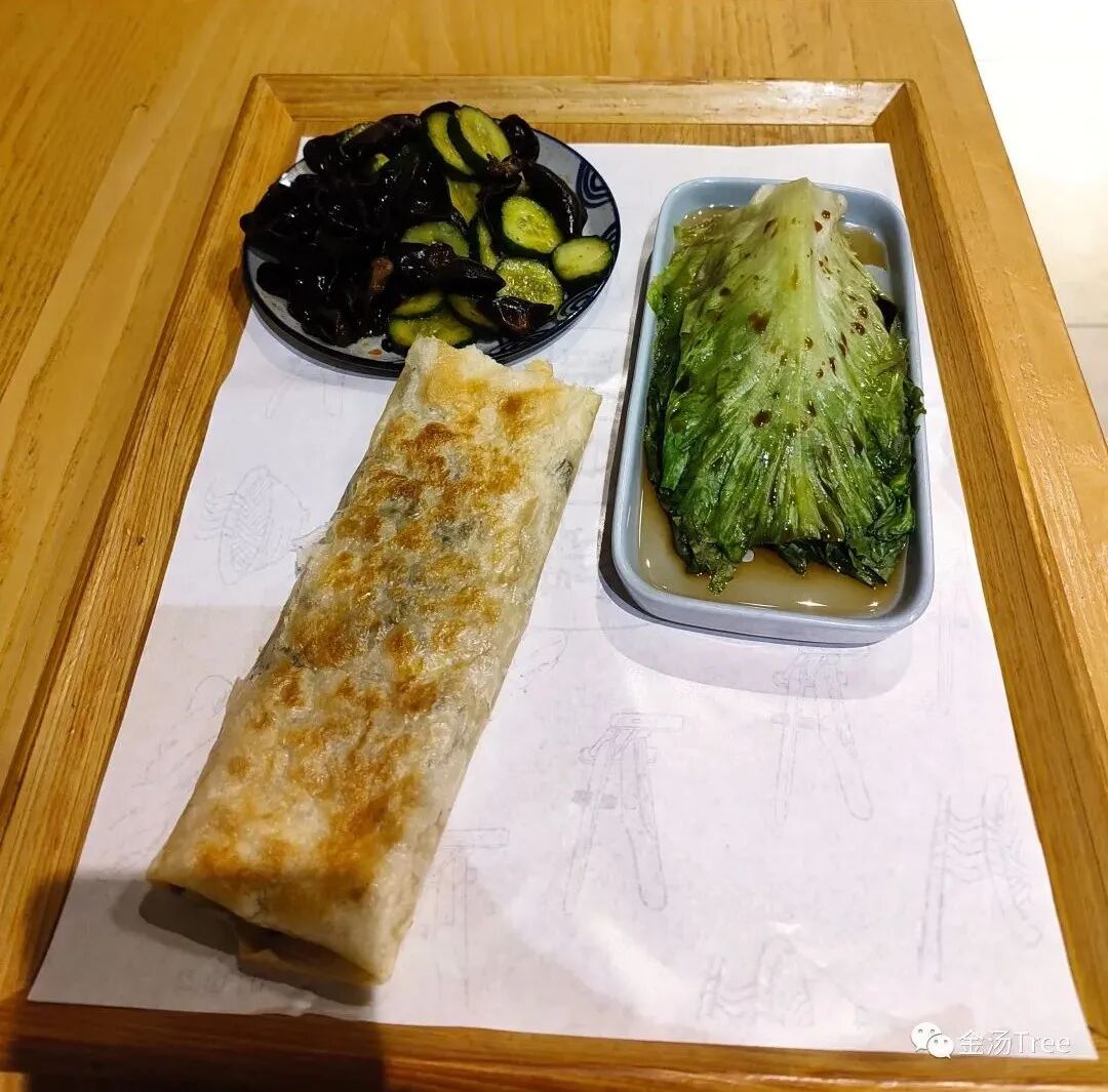 这次是一位年轻的上菜员。同样是没有玉米和青豆。我同样说,如果没有了,那么白菜丝多给放点儿也行啊。