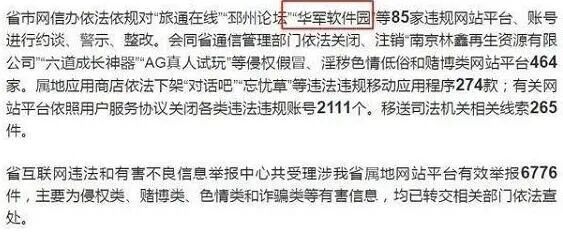 这不是,最近,危机来了,根据江苏省网信办通告,依法依规对“旅通在线”“邳州论坛”“华军软件园”等85家违规网站平台、账号进行了约谈、警示、整改,对于华军软件来讲,虽然具体违规方面没有披露,但是根据网站业务来看,大概率还是因为网站流氓软件和违规广告诱导问题被点名。