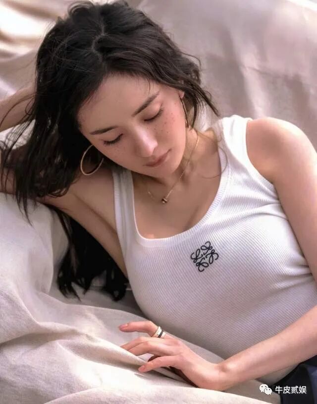 穿上白色背心的杨幂,更是绝了,她随意的一个pose,三分漫不经心、其余的都是丰满妩媚,脸上的小雀斑更是点睛之笔。