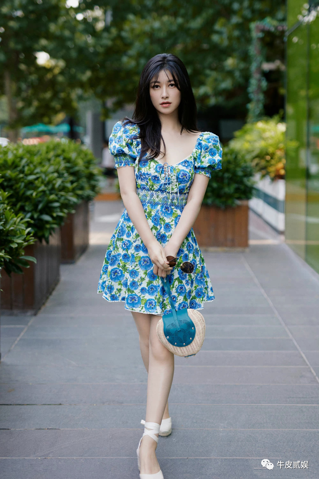 穿上蓝色印花薄纱裙显得特别优雅大气,轻薄的薄纱面料穿起来也非常轻盈,并秀出了精致的锁骨和优秀的肩颈线条。