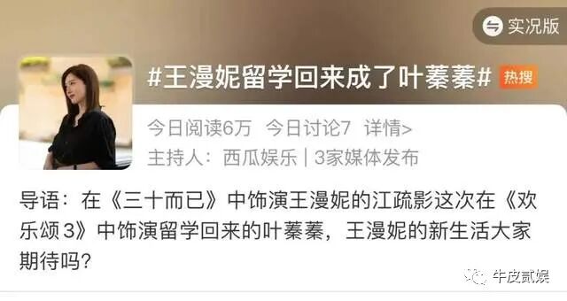 因为这样的千篇一律的出演,网友们还给她奉上了一个热搜,叫王曼妮留学回来成了叶蓁蓁。