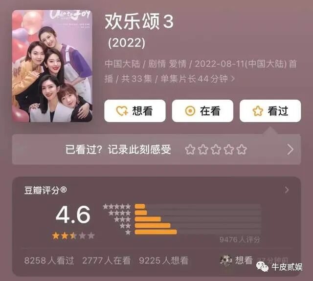 王曼妮咧嘴笑,叶蓁蓁同样也是这样的动作,结果《欢乐颂3》的 豆瓣评分才4.6分,实在是拉垮。