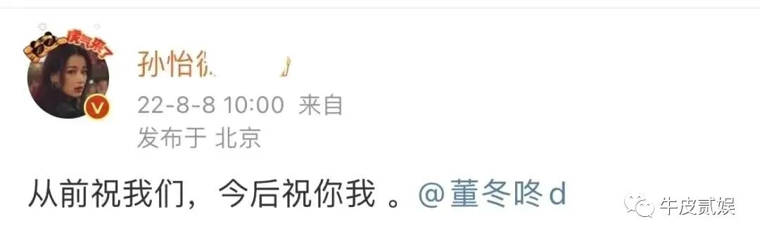 而孙怡则伤感地回复到:“从前祝我们,今后祝你我。”
