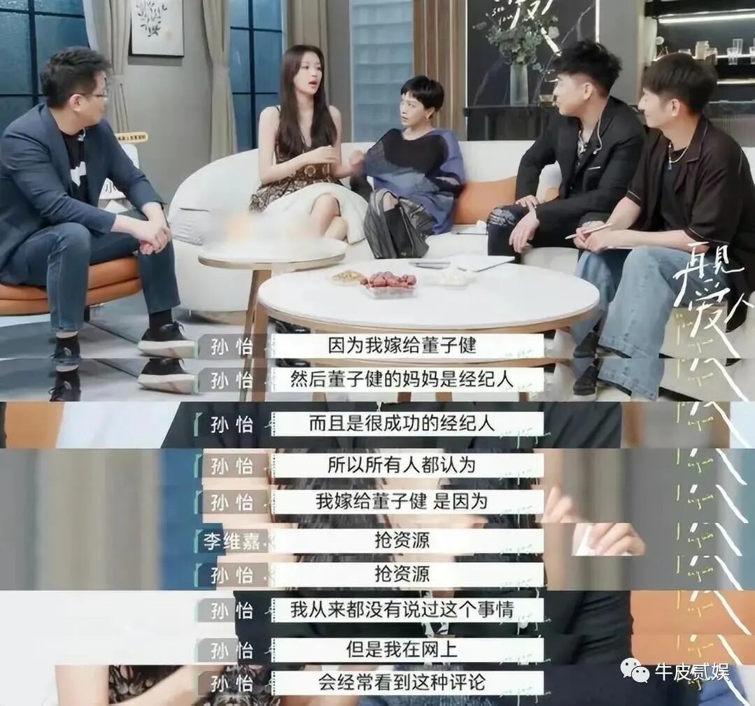 对于这一说法,孙怡表示自己很委屈,她说,她和董子健结婚完全是出于两个人的感情,没有其他的外在的因素。