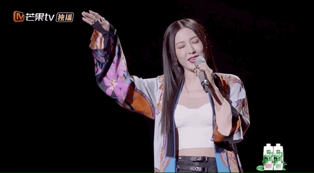 节奏响起,陈法蓉一边扭动着身体一边唱歌,拿起麦克风支架很陶醉地沉浸在经典音乐之中。