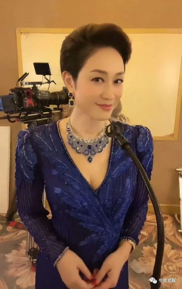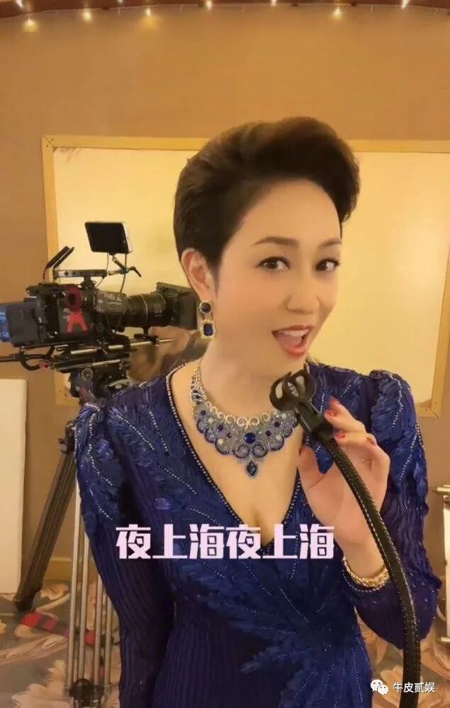 前段时间,她在自己的活动室里特意唱起了《夜上海》,只见她一头短发干练精致,一身紫色深v礼服端庄又不失性感,尤其v领的设计让陈法蓉的事业线一览无余。
