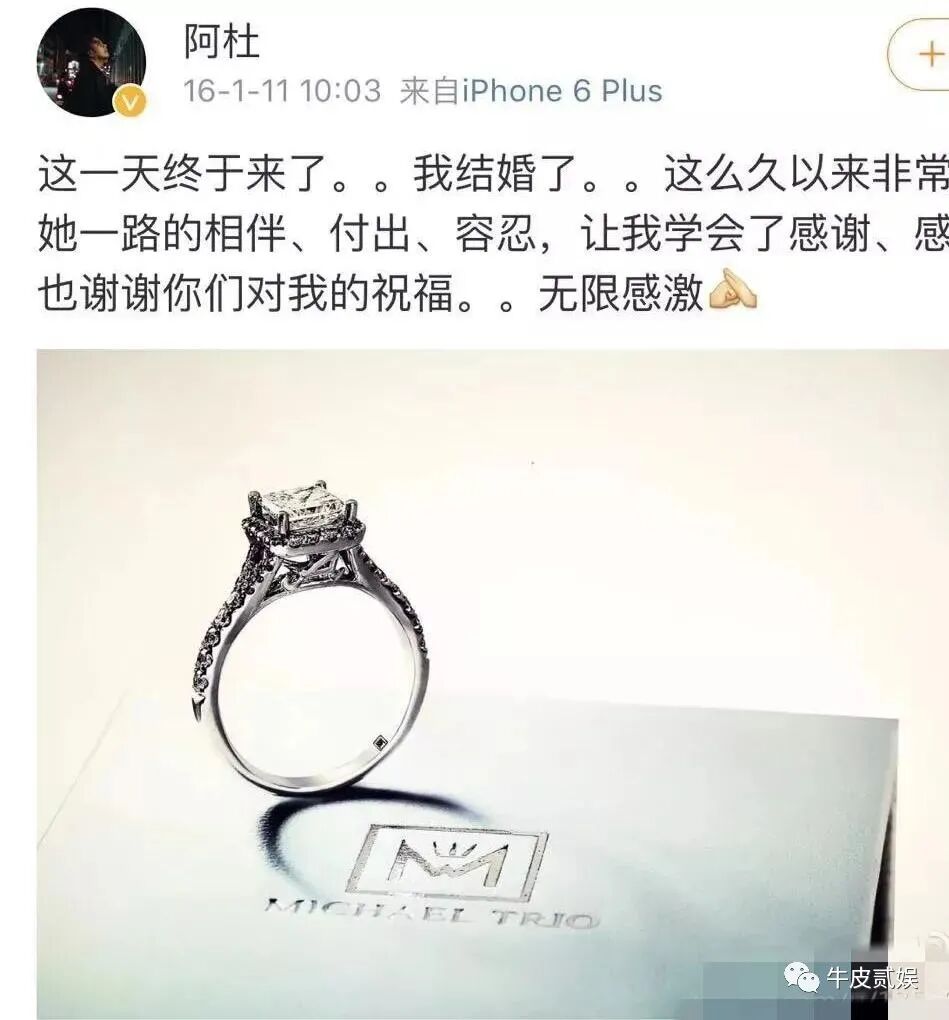 2016年,阿杜终于和相恋20年的女友结婚了。那天,他在微博中写道: