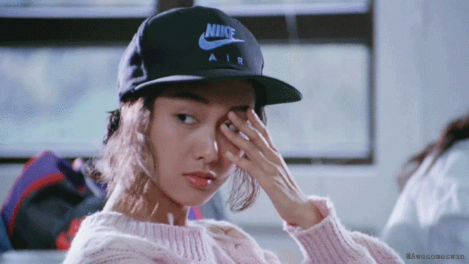 蓝色的鸭舌帽,头发慵懒地梳成低马尾,两缕卷卷的细发垂在耳朵两侧,成了无数青春少男心目中的女神。