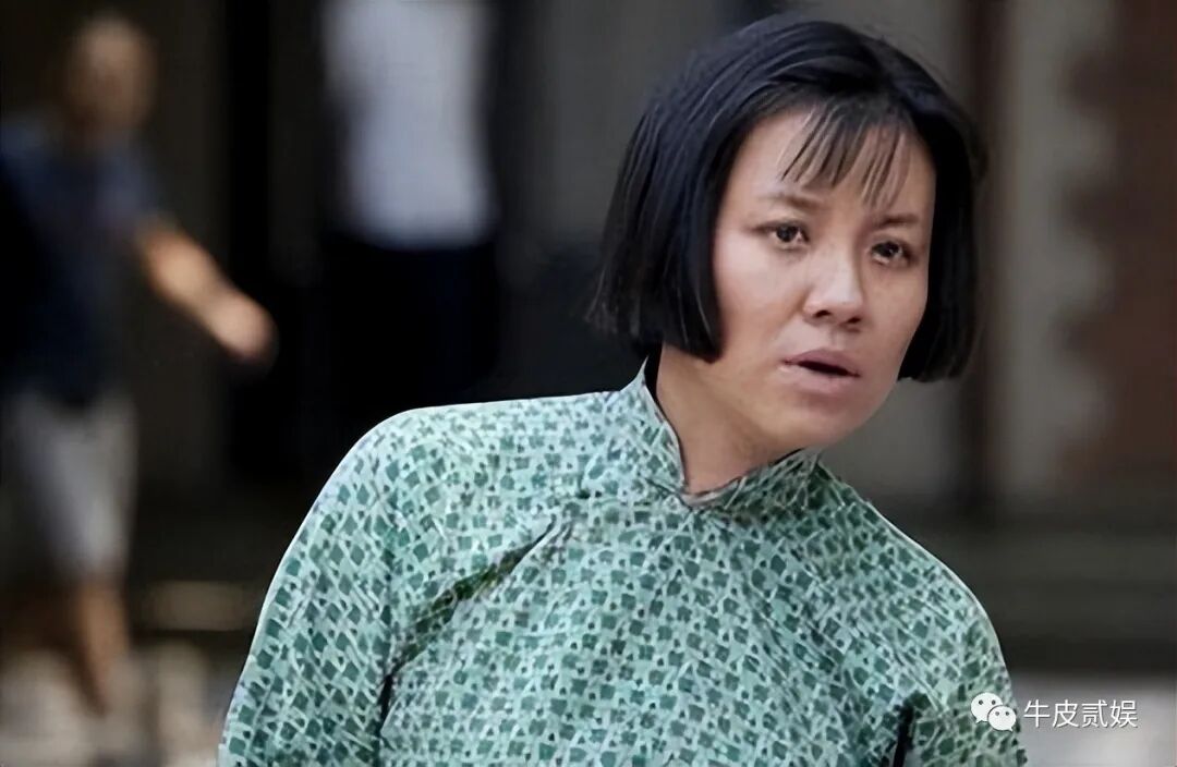 剧中的她总是穿着花色的上衣,留着乱糟糟的齐耳短发,面色枯黄。